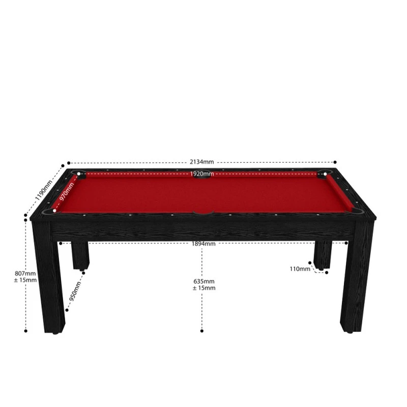 Pratique, avec le plateau dinatoire vendu séparément, ce billard peut se convertir en table de salle à manger pour 8 personnes.