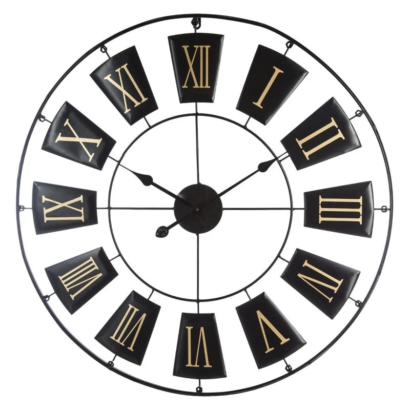 Horloge en métal chiffres romains coloris noir. Pour un style moderne et contemporain.