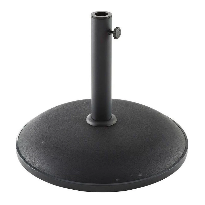 Pied de parasol 25 kg Hespéride en béton noir. Fabrication de qualité avec molette de serrage.