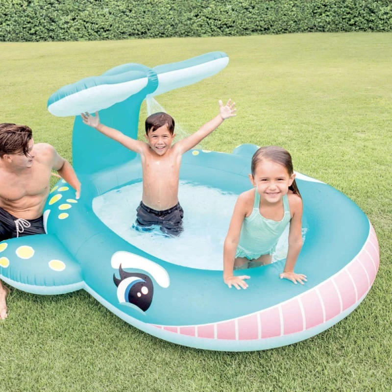 Offrez un petit coin de fraicheur à vos enfants avec cette petite piscine fontaine en forme de baleine de la marque Intex.