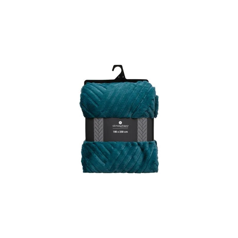 Plaid géant fausse fourrure 180×230 cm bleu canard de la marque Atmosphera.