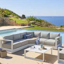 Salon D’angle 5 Places Allure Gris Minéral / Blanc Hespéride