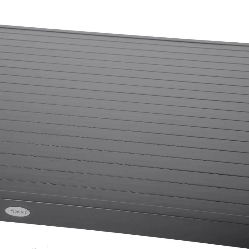 Cet été, installez vous autour de la table carrée fixe en aluminium Piazza en coloris graphite de la marque Hespéride.