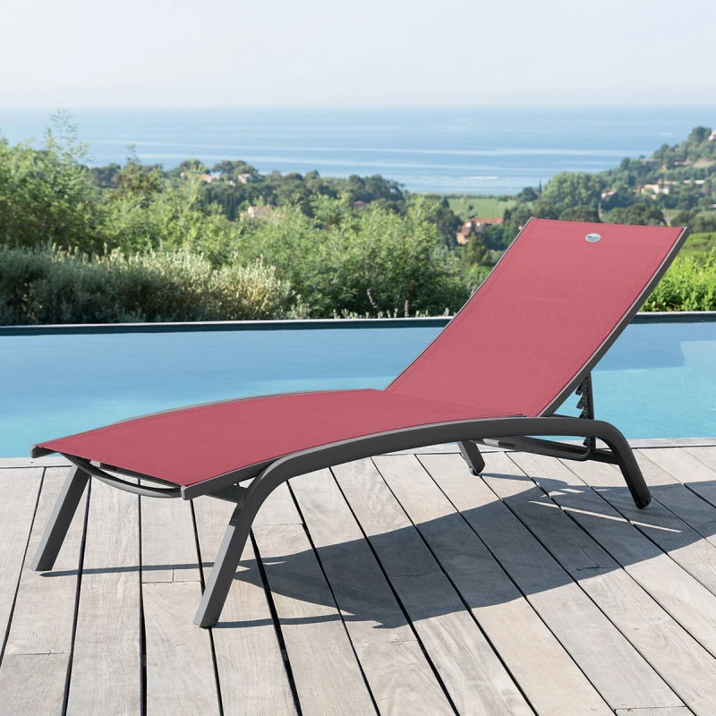 Profitez du soleil avec ce transat Bonao coloris grenade et graphite de la marque Hespéride.
